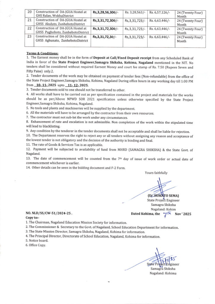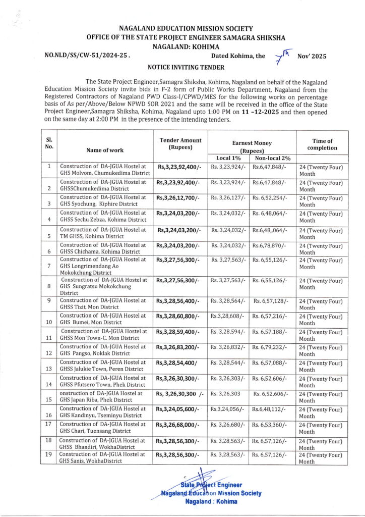 • NEMS: Residential Hostel Pfutsero Interview – Shortlisted Candidates